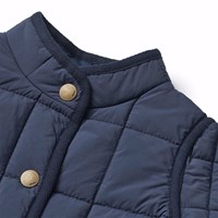 Mörkblå vattenavvisande termojacka i återvunnen nylon med quiltat mönster. Jackan har en normal passform, sidofickor, knäppning med knappar framtill och matchande kantband, vilket ger en fin finish.