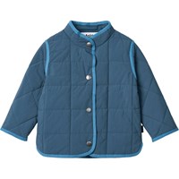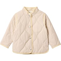 Beige vattenavvisande termojacka i återvunnen nylon med ett quiltat mönster. Jackan har en normal passform, en ståkrage, tryckknappar framtill och matchande kantning, vilket ger en fin finish.