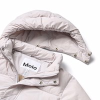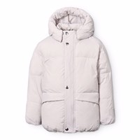 Ljus vattenavvisande jacka tillverkad av återvunnen nylon. Jackan har en avtagbar huva och dragkedja med flik som håller ute snö, vind och regn. Den har framfickor samt elastiska ärmslut för att hjälpa till att hålla vinden ute. Jackan är fodrad med återvunnen polyesterfyllning, vilket ger jämn mjukhet och optimal termisk isolering. Funktioner: Vind- och vattenavvisande. Vattenpelare: 5 000 mm. Andningsförmåga: 3 000 g/m2/24h. PFC-fri (PFOS och PFOA).