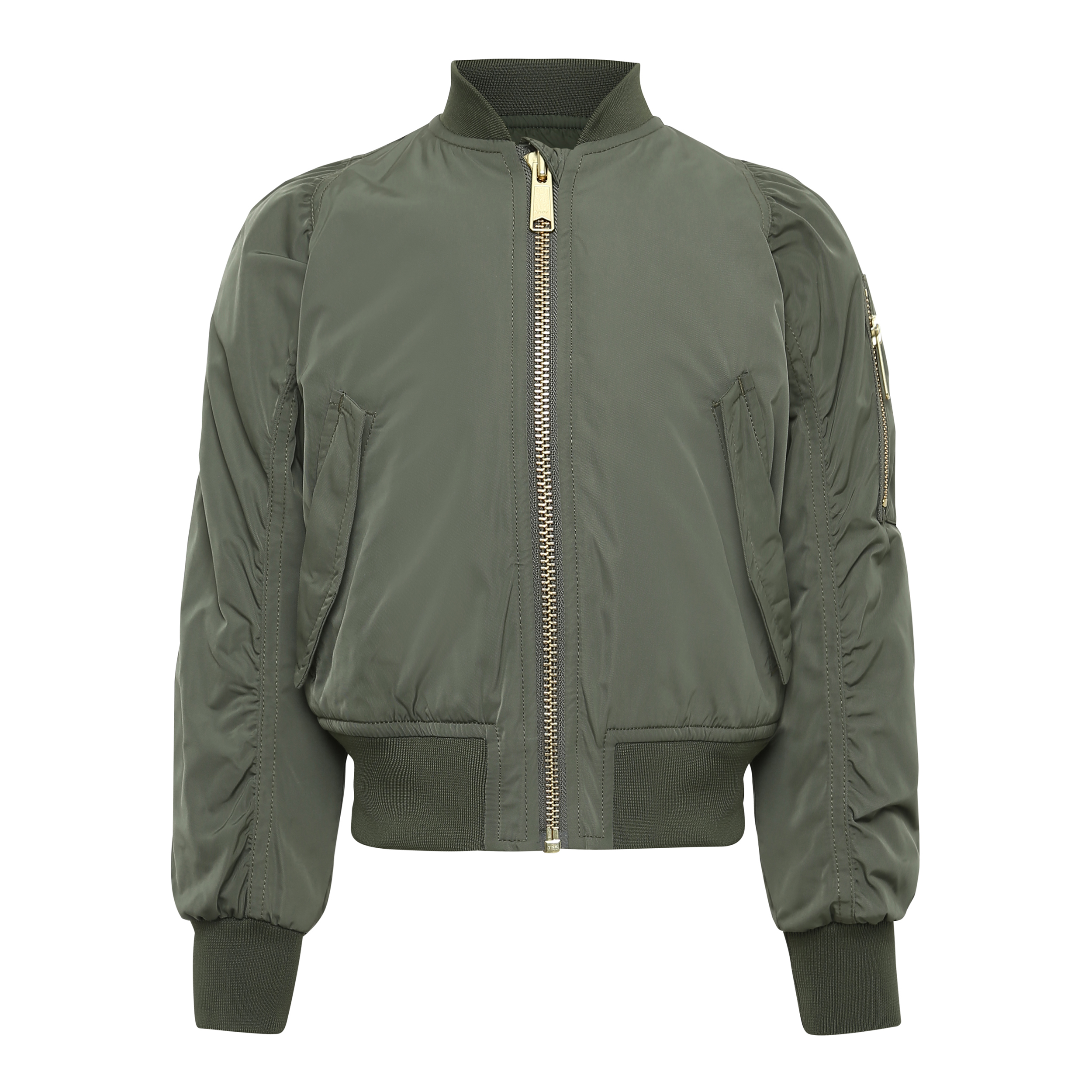 Haylee är en sportig bomber jacka army med dragkedja. Heylee har draperade ärmar, samt fickor i sidan och på ena ärmen och ribbkant vid hals och nederkant. Produkten har en vattenavvisande PFC-fri impregnering (innehåller ej PFOS, PFOA eller liknande). Vattenpelare: 8.000 mm. Andningsförmåga: 3.000 g/m2/24t.