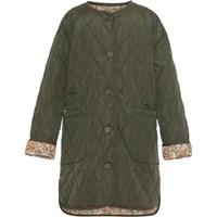 Hedvig är en quiltad kappa som kan användad på 2 olika sätt. Hedvig är mörkgrön och har ett blommigt foder i gröna, orangea och rosa nyanser och kan vändas ut och in. På det sättet får man 1 kappa med 2 utseende.