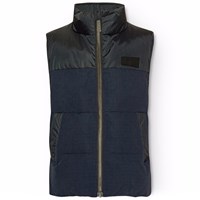 Varm väst i återvunnen polyester för kallare dagar, med ett tryck av snöklädda alper, solstrålar och en klar himmel. Västen har en stående krage, en dragkedja framtill och stora ärmhål, vilket gör att en jacka eller en tjock tröja kan bäras under. Det finns en stor reflex på baksidan för att öka synligheten i trafiken, samt en justerbar resår nertill för att hålla vinden ute.