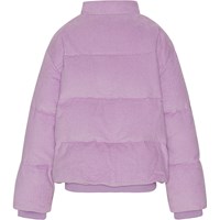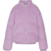 Helina är en lila bomberjacka i manchester. Jackan har en kort passform med hög krage, dragkedja framtill, fickor i sidorna och Vindfång vid ärmslut och nertill.