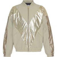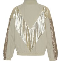 Helsa är en beige jacka med guld detaljer. Jackan har dragkedja, fickor fram och ribbkant vid halsen.