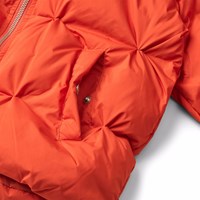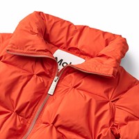 Vattenavvisande röd jacka tillverkad av återvunnen polyester med en puffeffekt. Jackan har en dragkedja framtill, en ståkrage, sidofickor och är fodrad med återvunnen polyesterfyllning, vilket ger en mjuk och optimal termisk isolering. Jackans vattenavvisande yta är fri från PFOS och PFOA.