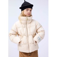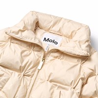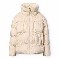 Vattenavvisande offwhite jacka tillverkad av återvunnen polyester med en puffeffekt. Jackan har en dragkedja framtill, en ståkrage, sidofickor och är fodrad med återvunnen polyesterfyllning, vilket ger en mjuk och optimal termisk isolering. Jackans vattenavvisande yta är fri från PFOS och PFOA.