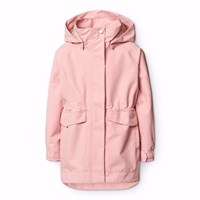 Rosa vind- och vattentät jacka i återvunnen polyester. Jackan har en avtagbar huva, sidofickor med ficklocksdetaljer, en vindslå vid dragkedjan och elastiskt och justerbart kardborreband vid ärmsluten för att effektivt hålla ute vinden. Insidan har en justerbar resår i midjan för att anpassa jackans silhuett och passform.