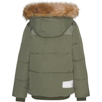 Grøn vinterjakke med store påsatte lommer og paneler med et mere shiny look på fronten. Jakken er en del af Molo’s 'Everyday Exploration’, som er overtøj til hverdagens mange aktiviteter og som både er praktisk, men også ser godt ud. Jakken er foret med pearl padding, som giver ekstra blødhed, holder godt på varmen og giver en dunlignende følelse. Jakken er selvfølgelig også produceret ved brug af ansvarlige og genanvendte materialer og lever derved op til Molo’s høje standarder for overtøj.