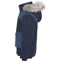 Mørkeblå vinterjakke med store påsatte lommer og paneler i fløjl på fronten. Jakken er en del af Molo’s 'Everyday Exploration’, som er overtøj til hverdagens mange aktiviteter og som både er praktisk, men også ser godt ud. Jakken er foret med pearl padding, som giver ekstra blødhed, holder godt på varmen og giver en dunlignende følelse. Jakken er selvfølgelig også produceret ved brug af ansvarlige og genanvendte materialer og lever derved op til Molo’s høje standarder for overtøj.
