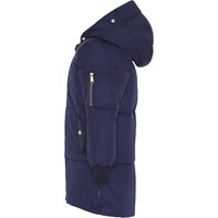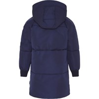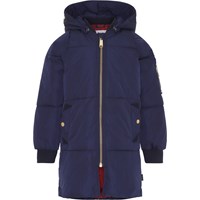 Hermione är en lång, mörkblå vinterjacka med guld färgad dragkedja fram, samt på ena ärmen. Jackan har avtagbar huva, rött foder, fickor i sidan, samt ribb vid hals och ärmslut. Jackan är fodrad med pearl padding, som gör jackan extra mjuk och ger en dunliknande känsla. Produkten har en vattenavvisande PFC-fri impregnering (innehåller ej PFOS, PFOA eller liknande).