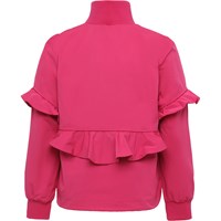 Hertha är en feminin jacka i en snygg iögonfallande pink färg. Hertha har volang dekorationer på ärmarna och ryggen, samt ribbkant vid ärmslut och nederkant.