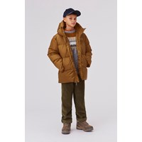 Hilo är en brun vinterjacka med luva och dragkedja. Jackan har en hög krage och reflex baktill. Hilo är fodrad med tekniskt dun, kallat pearl padding, som ger en extra mjukhet, håller värmen bra och ger en dunliknande känsla. Denna vara har en vattenavvisande PFC-fri impregnering (innehåller t.ex. inte PFOS, PFOA eller liknande). Vattenpelare: 5.000 mm. Andningsförmåga: 5.000 g/m2/24t.