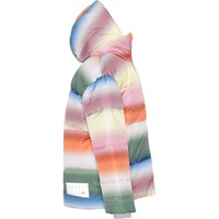 Hilo är en vinterjacka i pastellfärgat regnbågsmönster med luva och dragkedja. Jackan har en hög krage och reflex baktill. Hilo är fodrad med tekniskt dun, kallat pearl padding, som ger en extra mjukhet, håller värmen bra och ger en dunliknande känsla. Denna vara har en vattenavvisande PFC-fri impregnering (innehåller t.ex. inte PFOS, PFOA eller liknande). Vattenpelare: 5.000 mm. Andningsförmåga: 5.000 g/m2/24t.