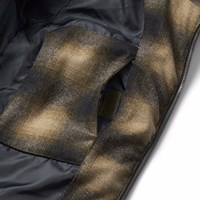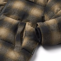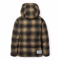 Varm och funktionell rutig brun jacka i återvunnen polyester och ull. Jackan har en praktisk dragkedja, hög krage och avtagbar huva. Designad med framfickor, en innerficka, ribbade ärmslut och justerbar resår i nederkant för vindskydd. Det finns en stor reflex på baksidan för ökad synlighet i trafiken. Jackan är fodrad med mjuk, återvunnen polyesterfyllning för jämn komfort och optimal värmeisolering.