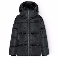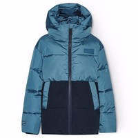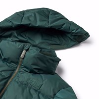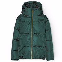 Petroleumgrön pufferjacka i återvunnen polyester som är perfekt för en kall vinter. Den har en avtagbar huva, sidofickor och ärmar med ribbstickade muddar som effektivt håller ute vind, snö och regn samtidigt som handskar hålls på plats. Jackan har en stor reflex på baksidan för att öka synligheten i trafiken.