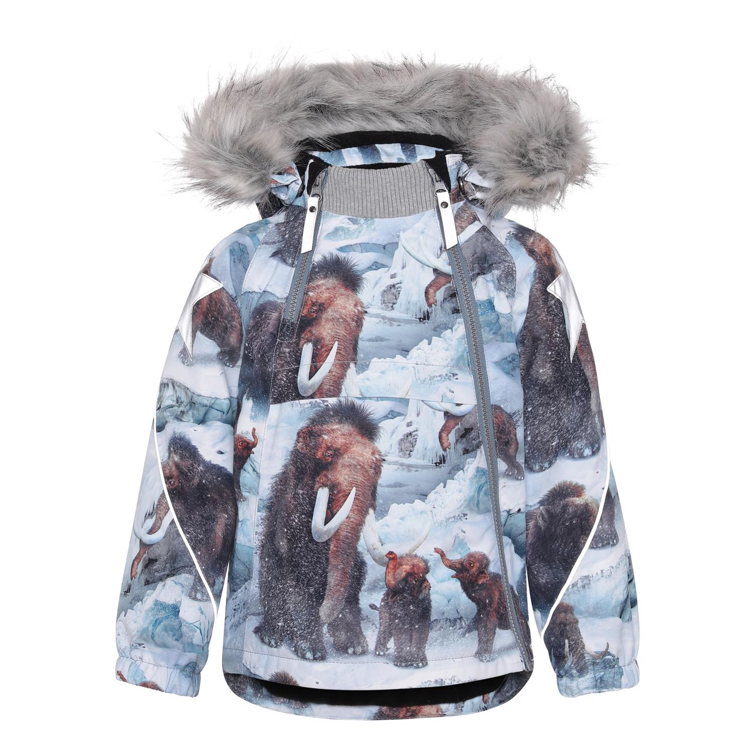 Hopla Fur är en funktionell och vattentät vinterjacka i ljusblå med mammuttar och Molos välkända reflexstjärna på ärmarna och baktill. Jackan har avtagbar huva med fuskpälskant (som också går att ta av), sned dragkedja, ribbad kant vid halsen och muddar vid ärmsluten. Jackan har också högkvalitativ fleece på utsatta områden och tejpade sömmar. Foder och innermaterial är återvunnet och tillverkat av återvunnen polyester. Denna produkt har en PFC- fri impregnering (innehåller t.ex. inte PFOS, PFOA och liknande). Vattenpelare och andningsförmågan är ytterligt förbättrad och är nu helt uppe i 15.000mm i vattenpelare och andningsförmågan på 15.000 g/m2/24t.