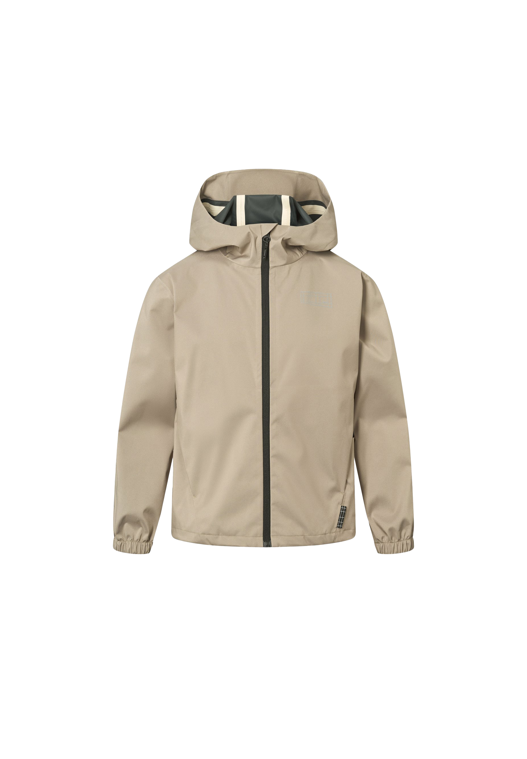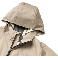Sandfärgad, lätt och vattentät jacka i återvunnen polyester. Jackan har praktiska blixtlåsfickor, elastiska muddar och en justerbar dragsko längst ner. Perfekt för övergångssäsongen.