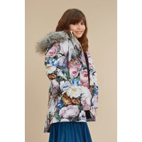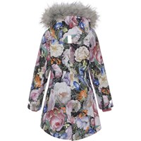 Peace är en funktionell och vattentät vinterjacka med blommor. Peace är perfekt till både de extremt kalla och vanliga vintrarna på grund av dess otroligt höga andningsförmåga och isolering. Den höga andningsförmågan hjälper till att reglera kroppstemperaturen och ser till att ditt barn varken blir för varmt eller kallt. På varmare vinterdagar kan barnet därför ha tunnare lager under och på de riktigt kalla dagarna kan man kompletterna med ett extra lager under. Har du ett stillasittande barn är Peace också ett bra val. Jackan har avtagbar luva med fuskpälskant (som också är avtagbar), dold dragkedja med överlappning, vindfång i ärmarna, trefickor fram och gummiband i ryggen för en snyggare passform. Jackan är vind- och vattentät och andas. Yttermaterialet är tillverkat av 45% återvunnen polyester, the 3M™ Thinsulate™ fodret av 78% återvunnen polyester och materiale av 100% återvunnen polyester. Denna vara har en vattenavvisande PFC-fri impregnering (innehåller t.ex. inte PFOS, PFOA eller liknande). Vattenpelare: 15.000 mm. Andningsförmåga: 15.000 g/m2/24t.