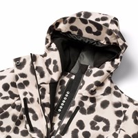 Vind- och vattentät vinterjacka i återvunnen polyester med ett unikt leopardmönster. Jackan har en fodrad huva, en dragkedja framtill med flik, samt vattentäta dragkedjefickor. Det finns en ficka på ärmen för ett skidpass och en innerficka för extra förvaring. Jackan har en vindflik, kardborreband runt handlederna och ärmslut med tumhål, vilket håller snö, vind och vatten ute. Dessutom är jackan fodrad med fleece, vadderad med 3M™ Thinsulate™ och en textreflektor för att synas i trafiken.