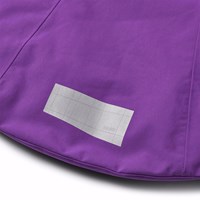 Lila vind- och vattentät skidjacka i återvunnen nylon. Jackan har en avtagbar fodrad huva och en dragkedja med överlappande flik för att hålla vinden ute. Jackan har stora reflexer för att öka synligheten i trafiken. Den har också fodrade fickor med drgakedja, en ficka på ärmen för liftkort och en innerficka. Jackan har också ett vindskydd runt midjan och ärmslut med tumhål för att hålla ute snö, vind och vatten. Den är fodrad med fleece och 3M™ Thinsulate™, vilket ger större rörlighet för barnet.