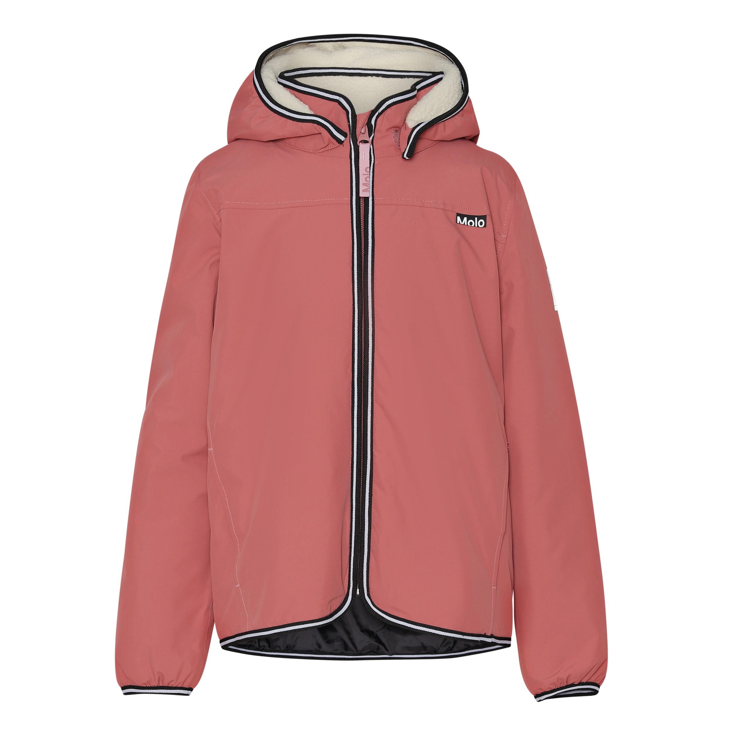 Snygg, fodrad jacka i röd med avtagbar huva. Jackan är vind- och vattentät med tejpade sömmar, dragkedja och fickor. Jackan har fleece i huvan och ner längs ryggen, samt reflexer på ena ärmen och baktill. Denna produkt har en vattenavvisande PFC-fri impregnering (innehåller t.ex. inte PFOS, PFOA och liknande). Vattenpelare: 5.000 mm. Andningsförmåga: 5.000 g/m2/24t.