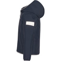 Vattentät jacka i mörkblå med tejpade sömmar och fodring som gör den mycket lämplig som regnkläder under kalla höst- och vintermånader. Jackan kan även användas som vardagsklädsel under övergångsperioderna när vädret kan vara väldigt omväxlande. Jackan har blixtlås framtill, en avtagbar fleece huva, fickor på sidorna samt reflexer baktill och på ena ärmen. Vattentäthet: 5 000 mm. Andningsförmåga: 5 000 g/m²/24t.