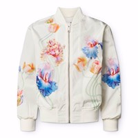 Rosa, vattenavvisande (PFC-fri: PFOS och PFOA) bomberjacka i återvunnen polyester med tryck på ryggen och bröstet av en häst och texten 'Horsepower'. Jackan har en normal passform, dragkedja framtill, ribbade kanter vid kragen, midjan och ärmhålen.