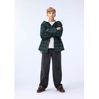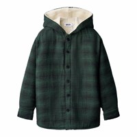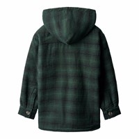 Grönrutig overshirt i mjuk ekologisk bomull. Overshirten har en lös passform, en fodrad huva, knäppning med knappar och långa ärmar med manschetter och knäppning med knappar. Overshirten är fodrad med ett lätt och mjukt teddyfoder, vilket gör den bekväm att bära och perfekt för övergångsperioder eller som ett extra lager på kyligare dagar.