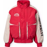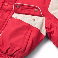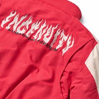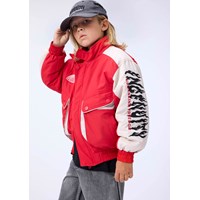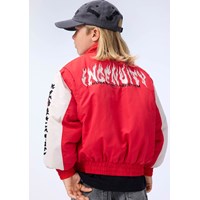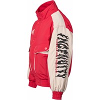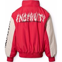 Röd och vit jacka med broderad text på ryggen och ärmen, "Ingenuity humankind freedom". Jackans design är inspirerad av motocrossvärlden, med stora fickor och en oversize passform. Jackan har en ståkrage, dragkedja med flik och ribbade muddar och nederkant.