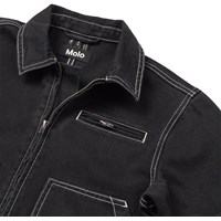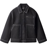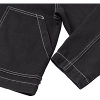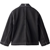 Svart denimjacka i ekologisk bomull med slående kontrastsömmar och en enkel, cool arbetsklädeslook. Jackan har dragkedja, stora framfickor, en liten bröstficka med dragkedja och en broderad fredssymbol på ryggen. En stilren och hållbar vardagsfavorit.