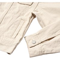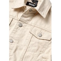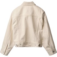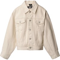 Off-white denimjacka i bomull med lös passform, skjortkrage, knäppning framtill, sidfickor, bröstfickor och justerbara tryckknappar bak. Från storlek 92-134 levereras jackan med tryckknappar, vilket gör det lättare för barn att knäppa jackan själva. Från storlek 140-176 levereras jackan med vanlig knäppning.