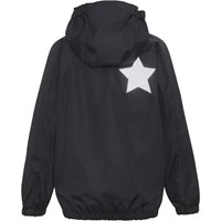 Waiton är en lätt och funktionell regnjacka i svart med nylonfoder. Waiton har övertäckt dragkedja som skyddar mot vind och regn, tejpade sömmar, avtagbar luva och två fickor fram. Jackan har Molo´s ikoniska stjärnreflex på baksidan som ger extra synlighet i mörkret. En stor fördel med detta regnplagg är att det andas, så hög aktivitet inte resulterar i en fuktig innersida. Denna produkt har en vattenavvisande PFC-fri impregnering (innehåller t.ex. inte PFOS, PFOA och liknande). Vattenpelare: 5.000mm. Andningsförmåga: 5.000 g/m2/24t.