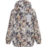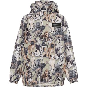 Waiton är en lätt och funktionell regnjacka med nylonfoder i khaki med ett charmigt hundmönster. Waiton har övertäckt dragkedja som skyddar mot vind och regn, tejpade sömmar, avtagbar luva och två fickor fram. Jackan har Molo´s ikoniska stjärnreflex på baksidan som ger extra synlighet i mörkret. En stor fördel med detta regnplagg är att det andas, så hög aktivitet inte resulterar i en fuktig innersida. Denna produkt har en vattenavvisande PFC-fri impregnering (innehåller t.ex. inte PFOS, PFOA och liknande). Vattenpelare: 5.000mm. Andningsförmåga: 5.000 g/m2/24t.