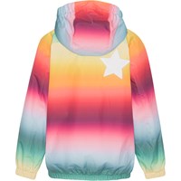 Waiton är en lätt och funktionell regnjacka med färgrikt regnbågsmönster. Waiton har täckt dagkedja som skyddar mot vind och regn, tejpade sömmar, avtagbar luva och två fickor framtill. Jackan har Molo´s ikoniska stjärnreflex på baksidan som ger extra synlighet i mörkret. En stor fördel med denna regnprodukt är att den också andas, vilket gör att en hög aktivitet inte ger en fuktig insida. Denna produkt har en vattenavvisande PFC-fri impregnering (innehåller t.ex. inte PFOS, PFOA eller liknande). Vattenpelare: 5.000 mm. Andningsförmåga: 5.000 g/m2/24t.