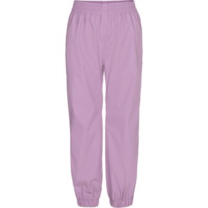 Waits är ett par lätta och funktionella regnbyxor i ljus lilla. Regnbyxorna har resår i benslut och Molo's karakteristiska stjärnreflex på ena benet. Regnbyxorna kan användas i alla slags väder, eftersom materialet är vattenavvisande och har bra andningsförmåga, samt tejpade sömmar. Produkten har en vattenavvisande PFC-fri impregnering (innehåller ej PFOS, PFOA eller liknande). Vattenpelare: 5.000 mm. Andningsförmåga: 5.000 g/m2/24t.