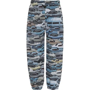 Waits är ett par lätta och funktionella regnbyxor med all-over tryck av bilar i blå och grå nyanser. Regnbyxorna har resår i benslutet och Molo's ikoniska reflex stjärna på ena benet. Regnbyxorna kan används i alla slags väder eftersom materialet är vattenavvisande och har bra andningsförmåga, samt har tejpade sömmar. Produkten har en vattenavvisande PFC-fri impregnering (innehåller ej PFOS, PFOA eller liknande). Vattenpelare: 5.000 mm. Andningsförmåga: 5.000 g/m2/24t