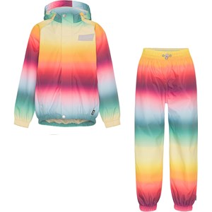 Whalley är ett lätt och funktionelt regnställ i färgrikt regnbågsmönster. Regnjackan har täckt dragkedja som skyddar mot vind och regn, tejpade sömmar, avtagbar luva och två fickor framtill. Regnbyxorna har tejpade sömmar, gummiband i benslut och i midjan, som kan justeras. Både regnjackan och byxorna har Molo´s välkända reflexstjärna på baksidan. En stor fördel med denna regnprodukt är att den också andas, vilket gör att en hög aktivitet inte ger en fuktig insida. Denna produkt har en vattenavvisande PFC-fri impregnering (innehåller t.ex. inte PFOS, PFOA eller liknande). Vattenpelare: 5.000 mm. Andningsförmåga: 5.000 g/m2/24t.