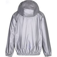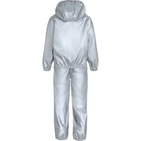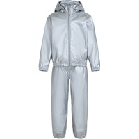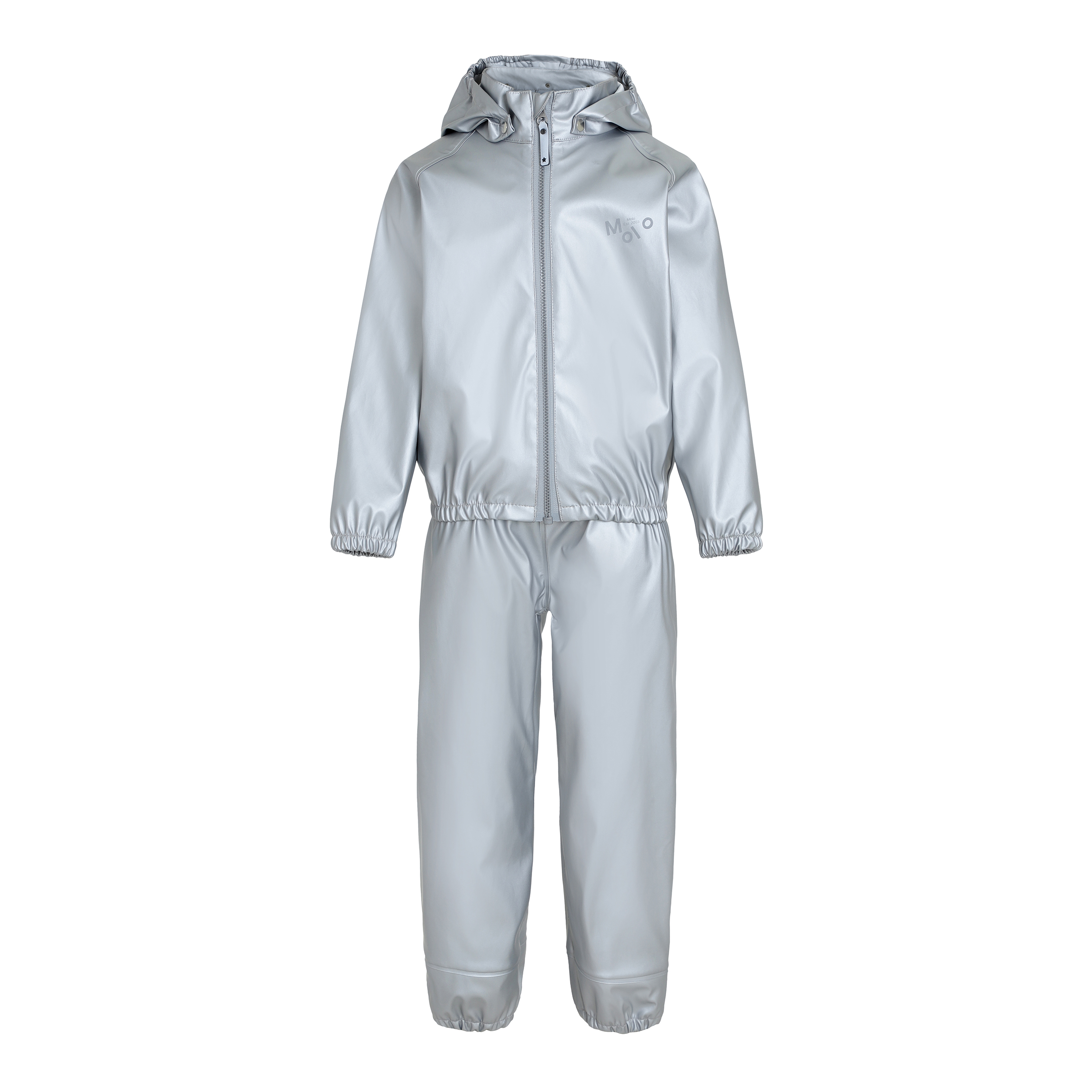 Zet är en lätt och funktionell regnställ i silver. Regnjackan har avtagbar huva, dragkedja fram och resår vid kanten av huvan, ärmar samt i nederkanten av jackan. Regnbyxorna har resår i midjan och benslut samt avtagbara fothällor. Både jacka och byxor har tejpade sömmar och har Molo's karakteristiska reflexstjärnor för ökad synlighet i mörker. Produkten har en vattenavvisande PFC-fri impregnering (innehåller ej PFOS, PFOA eller liknande). Vattenpelare: 5.000 mm