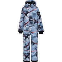 Hux är en overall i blått och vinröd med ett ishockeytryck, som har många funktionella detaljer och passar perfekt till skidåkning. Overallen har avtagbar huva, dragkedja framtill med knappslå, reflexer på ärmar och ben, snölås i benslut och utrymme till pjäxor, samt fothällor i gummi. Hux har även fickor med dragkedja framtill och en ficka på ärmen till liftkort. Overallen är vind- och vattentät och har bra andningsförmåga, och har 3M™ Thinsulate™ foder, fleece i hög kvalitet vid utsatta områden och tejpade sömmar. Produkten har en vattenavvisande PFC-fri impregnering (innehåller ej PFOS, PFOA eller liknande). Vattenpelare: 15.000 mm. Andningsförmåga: 15.000 g/m2/24h.
