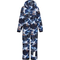Hux är en overall i blå med skidliftar och många funktionella detaljer, som passar extra bra till skidåkning. Overallen har avtagbar huva, dragkedja, reflexer på ärmar och ben, snöskydd vid benslut, extra plats till pjäxor och gummiband under foten. Hux har dessutom fickor med dragkedja framtill och en ficka på ärmen till liftkort. Overallen är vind- och vattentät, andas och har tejpade sömmar. Foder och innermaterial är återvunna, tillverkat av återvunnen polyester. Denna produkt har en PFC- fri impregnering (innehåller t.ex. inte PFOS, PFOA och liknande). Vattenpelare: 15.000 mm. Andningsförmåga: 15.000 g/m2/24t.