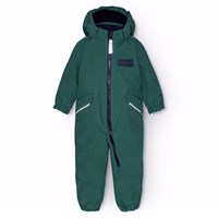Mörkblå varm overall för baby och småbarn i återvunnen polyester. Overallen har en avtagbar fodrad huva och en extra lång och vattentät dragkedja framtill för att göra den lätt att ta på. Overallen har resår i midjan, ärmslut och benslut för att hålla snö, regn och vind ute och för att hålla vantar och stövlar påplats. Overallen har reflexer på fickorna och ärmarna samt en stor stjärnformad reflex på benet för att öka synligheten i trafiken. Overallen har fodrade framfickor och en justerbar inre resår i midjan för bra form och passform runt kroppen.