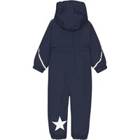 Hyde är Molo´s nya blå unisexoverall till de minsta. Hyde är en del av Molo´s nya Outdoor-Proof linje, som är framten för det aktiva barnet. Overallen är perfekt till kalla vinterdagar utan de kallaste minusgraderna. På dagar med hög windchill-faktor kan du komplettera Hyde med en fleecetröja eller liknande under. Overallen har reflexpipings och Molo´s välkända reflexstjärnor båda på sidorna och baktill, samt en sned dragkedja framtill. Hyde är vind-och vattentät och har tejpade sömmar. Denna produkt har en vattenavvisande PFC-fri impregnering (innehåller t.ex. inte PFOS, PFOA eller liknande). Vattenpelare: 10.000 mm. Andningsförmåga: 8.000 g/m2/24t.