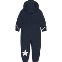 Unisex overall till de mindre barnen som passar perfekt både till vardagen och till det aktiva barnet. Overallens många kvaliteter, som hög vattenpelare och hög andningsförmåga håller barnet varmt och torrt under de kalla månaderna på året. Overallen är en del av Molo´s "Outdoor Proof" linje, som är ytterkläder för medium vintrar utan extrema minusgrader. Samtidigt lever overallen upp till Molo´s höga standard för ytterklädermed samma funktionella detaljer och kvalitetsmaterial, som Molo är bäst känt för. Overallen är självklart också producerad med hållbara och återvunna material. Hyde är här i mörkblå