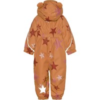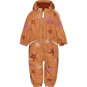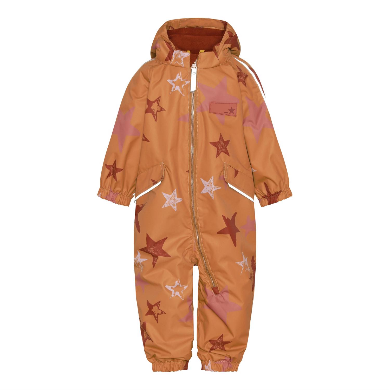 Hyde är Molos nya unisex overall till de minsta i en snygg gyllene färg med stjärnor. Overallen har en sned dragkedja, reflexpipings och Molos välkända stjärnreflexer på sidan och baktill. Hyde är både vind- och vattentät, andas bra och har tejpade sömmar. Jackans foder och innermaterial är 100% återvunnet, tillverkat av återvunna plastflaskor. Denna produkt har en vattenavvisande PFC-fri impregnering (innehåller t.ex. inte PFOS PFOA och liknande). Vattenpelare: 12.000 mm. Andningsförmåga: 8.000 g/m2/24t.