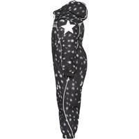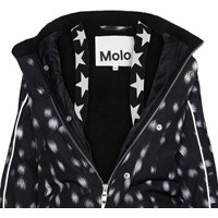 Polaris är en av Molos favoriter när det är riktigt kallt. Polaris är, förutom dess många välkända kvaliteter, nu också delvis återvunnen. Det betyder att yttermaterialet är 51% återvunnet, medan foder och innermaterial är 100% återvunna, tillverkade av återvunnen polyester. Polaris är en funktionell overall i svart med vita fläckar, som liknar pälsen på ett rådjur. Overallen har reflex pipings, avtagbar huva, dragkedja, gummiband under foten, snöskydd vid benslut och Molos välkända reflexstjärnor på ärmar och ben. Overallen är vind- och vattentät, andas och har tejpade sömmar. Denna produkt har en PFC-fri impregnering (innehåller t.ex. inte PFOS, PFOA och liknanade), och har tack vare detta vunnit ´Bäst-i-test´. Vattenpelare och andningsförmågan är ytterligt förbättrad och är nu helt uppe i 15.000mm i vattenpelare och andningsförmågan på 15.000 g/m2/24t.
