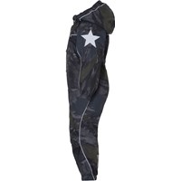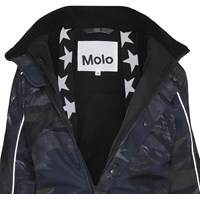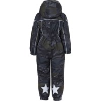 Funktionell vind- och vattentät overall med ett kamouflagemönster. Overallen har blixtlås, avtagbar hätta, snölås i benen, gummirem under foten samt nylonfoder i det yttersta lagret vid armar och ben för att göra den lätt att ta av och sätta på. Därutöver har overallen invändig fleece på rygg, bakdel, knä och hals. Avtagbar hätta, snölås i benen samt Molos karaktäristiska stjärnreflexer och reflexpiping, som säkrar att barnet syns på långt avstånd i mörkret. Overallen lever också upp till EU’s säkerhetsstandard DS/EN 14682 och är fodrad med 3M™ Thinsulate™, vilket gör den särskilt varm och tillåter kroppen att andas, samtidigt som den förblir mjuk och lätt. Den här produkten har en PFC-fri vattenavvisande impregnering (innehåller inte PFOS, PFOA eller liknande). Med bakgrund i detta har Polaris vunnit 'Bäst-i-Test'. Vattenpelare: 15.000 mm. Andas: 15.000 g/m2/24hr.