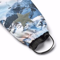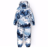 Overall i återvunnen polyester för en kall vinter med ett vackert tryck av snöklädda Alper i nyanser av blått. Overallen har en avtagbar fodrad huva och dragkedja med överlappande flik för att hålla vind och vatten ute. Den har elastik i midjan, ärmarna och benen för att hålla snö, regn och vind ute. Overallen är utrustad med reflexer längs sidorna, runt huvan och stora stjärnformade reflexer på både ärmarna och benen för att öka synligheten i trafiken. Overallen är fodrad med 3M™ Thinsulate™, vilket gör den lätt och ger större rörlighet för barnet. Det finns också fodrade framfickor med vattentäta dragkedjor.
