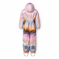 Vind- och vattentät regnbågsfärgad overall för kalla vintrar tillverkad av återvunnen polyester. Overallen har en avtagbar huva med fleece, framfickor med vindslå, dragkedjor framtill med stormslå, och hakskydd för att förhindra att huden fastnar. Overallen har interna elastiska remmar och elastik i ärm- och benslut för att säkerställa en bra passform och effektivt hålla ute snö, regn och vind. Overallen är utrustad med reflexband och två stora stjärnor på benen för synlighet i trafiken. Dessutom är den fodrad med återvunnen polyesterfleece, 3M™ Thinsulate™, som hjälper till att behålla värmen.