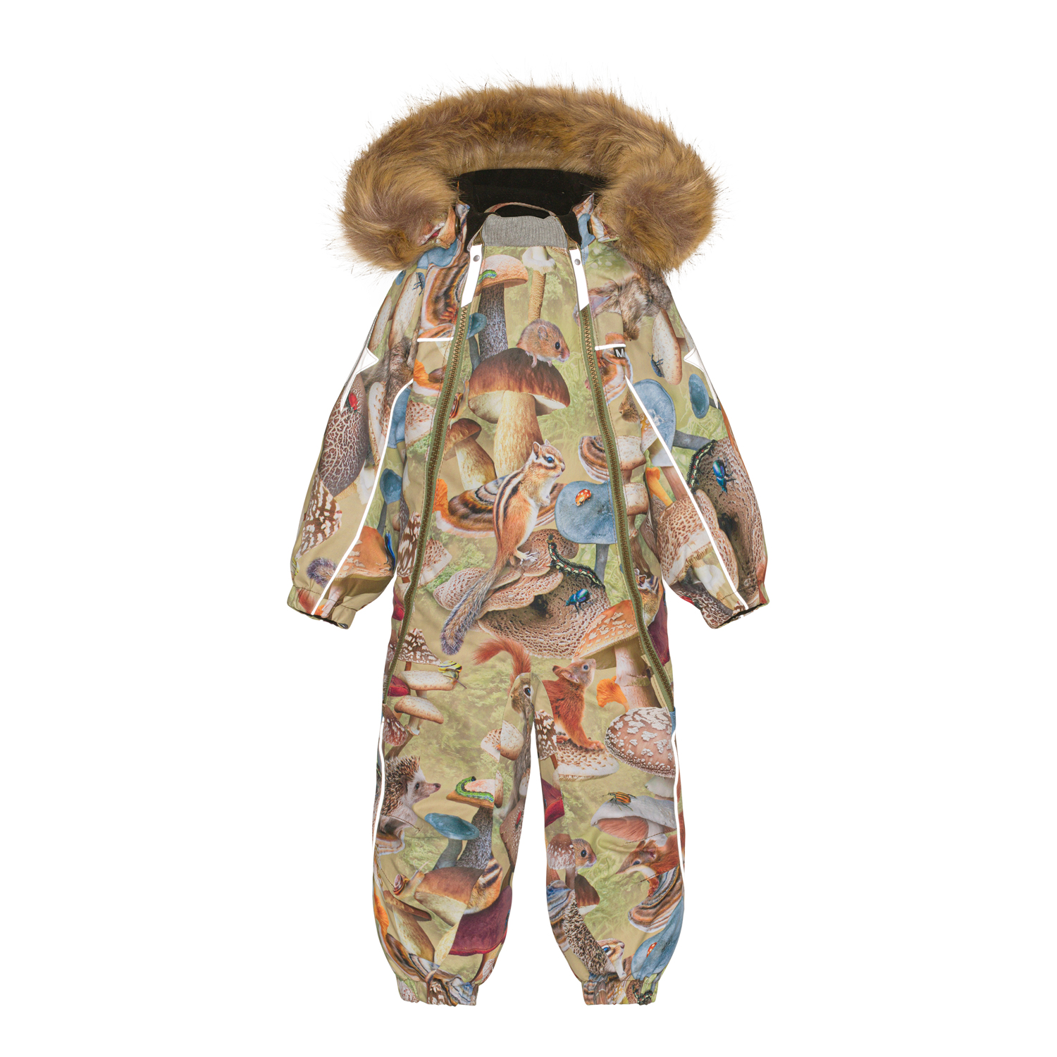 Pyxis er en af de mest elskede og kendte flyverdragter fra Molo, som passer perfekt til de mindre børn. Flyverdragtens mange kvaliteter, som ekstremt højt vandsøjletryk og en lige så høj grad af åndbarhed, kombineret med at Pyxis altid kommer i flotte print og farver, gør at denne flyverdragt er en sikker vinder hvert år. Dette er flyverdragten som ikke går på kompromis og selvfølgelig er den også fremstillet ved brug af ansvarlige og genanvendte materialer. Flyverdragten er i beige med print ef skovens små dyr og farverige svampe.