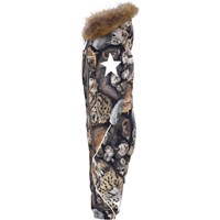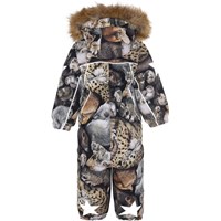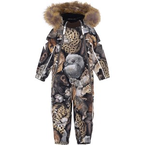 Pyxis är en funktionell overall till baby och små barn i brun med sovande djur. Pyxis är perfekt till både de extremt kalla och vanliga vintrarna på grund av dess otroligt höga andningsförmåga och isolering. Den höga andningsförmågan hjälper till att reglera kroppstemperaturen och ser till att ditt barn varken blir för varmt eller kallt. På varmare vinterdagar kan barnet därför ha tunnare lager under och på de riktigt kalla dagarna kan man kompletterna med ett extra lager under. Har du ett stillasittande barn är Pyxis också ett bra val. Overallen har avtagbar luva med en fin fuskpälskant (som också är avtagbar), två sneda dragkedjor framtill som gör overaller enkel att få av och på, snölås vid benslut, gummistropp under fötterna och Molo´s välkända reflexstjärna på överärmarna och bak på benen. Overallen är vind- och vattentät och andas, samt har tejpade sömmar. Yttermaterialet är tillverkat av 45% återvunnen polyester, the 3M™ Thinsulate™ fodret av 83% återvunnen polyester och materiale av 100% återvunnen nylon. Denna vara har en vattenavvisande PFC-fri impregnering (innehåller t.ex. inte PFOS, PFOA eller liknande). Vattenpelare: 15.000 mm. Andningsförmåga: 15.000 g/m2/24t.